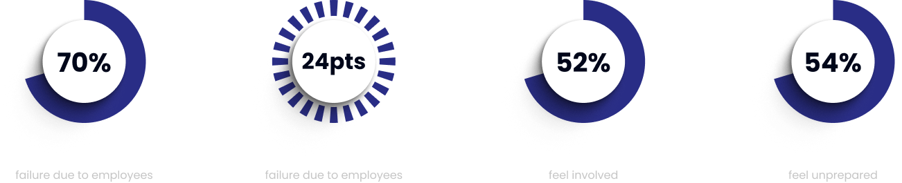 70% of digital transformation failures result from employee resistance, with cultural factors consistently outweighing technical challenges as barriers to success. Only 52% of employee feel involved in their company's digital transformation journey, contributing significantly to resistance patterns.